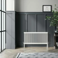 Athens White Double Column Horizontal Traditional Radiator 600x785mm