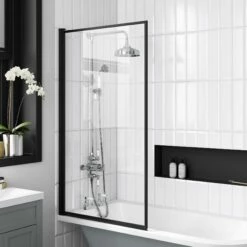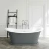 Be the first to review “Abingdon 1500 Dove Grey Roll Top Shower Bath – White Claw Feet & 6mm Easy Clean Matt Black Framed Screen” Cancel reply