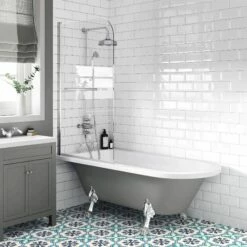 Abingdon 1700mm Dove Grey Roll Top Shower Bath – Chrome Claw Feet & 6mm Easy Clean Screen With Rail