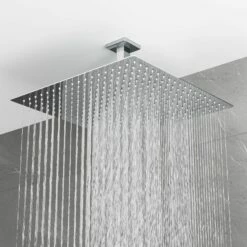 Galway Premium Ceiling Chrome Square Thermostatic Shower Set – 400mm Head & Hand Shower