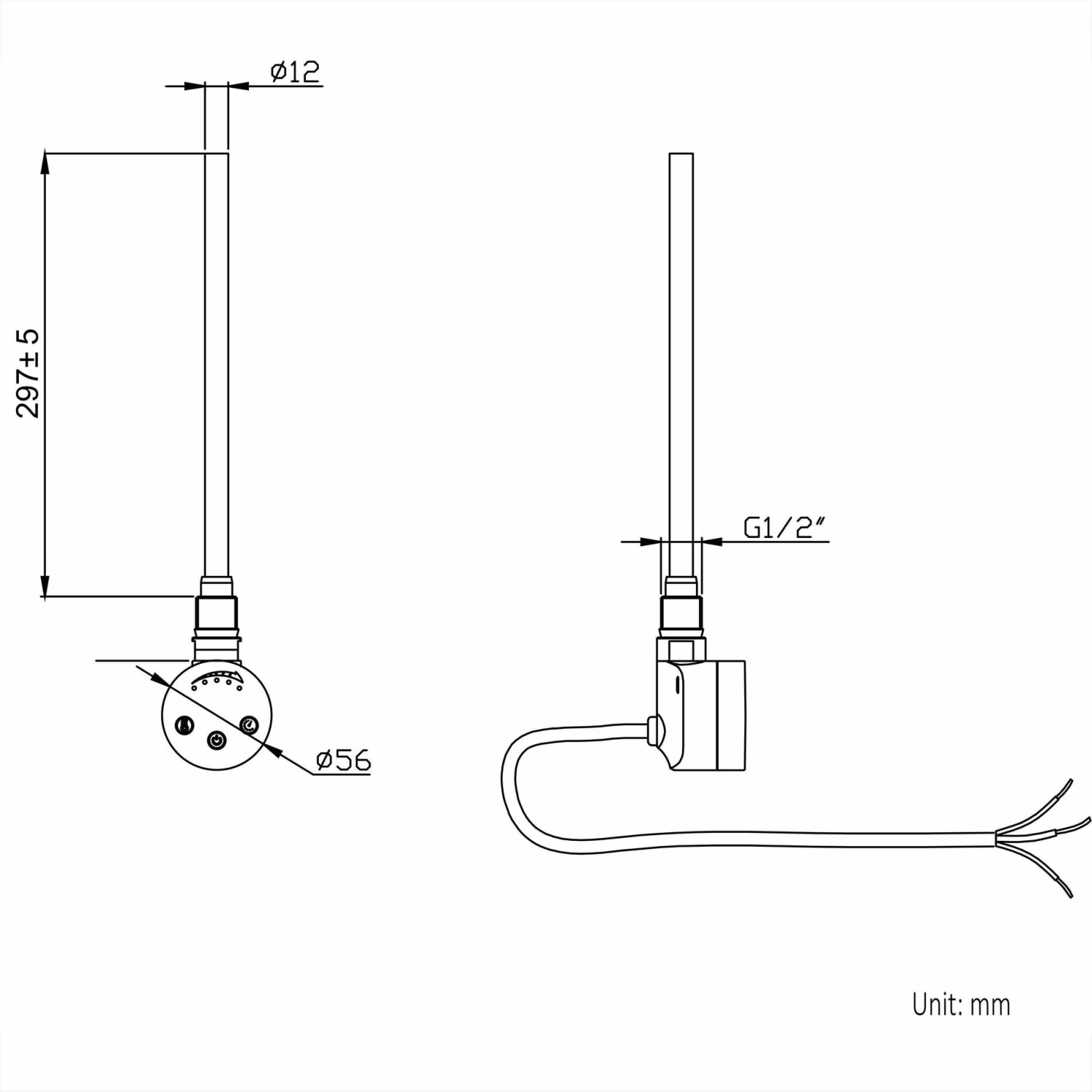 - 300W matt black thermostatic heating element included