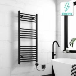 Be the first to review “Barcelona Electric Matt Black Straight Heated Towel Rail 1200x500mm” Cancel reply