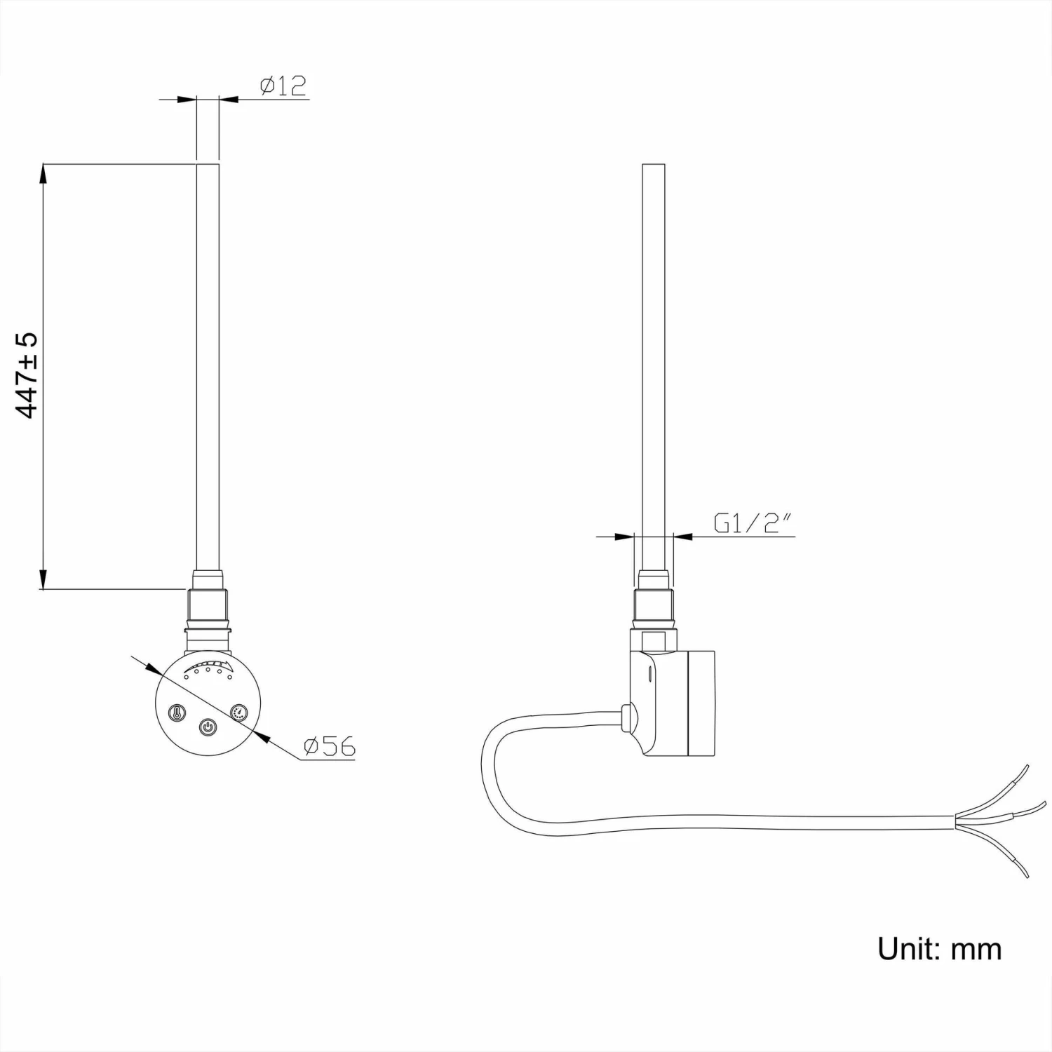 - 500W matt black thermostatic heating element included