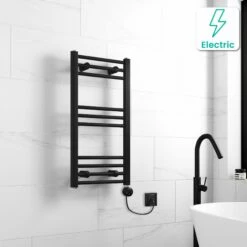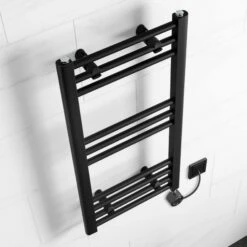 Be the first to review “Barcelona Electric Matt Black Straight Heated Towel Rail 800x400mm” Cancel reply