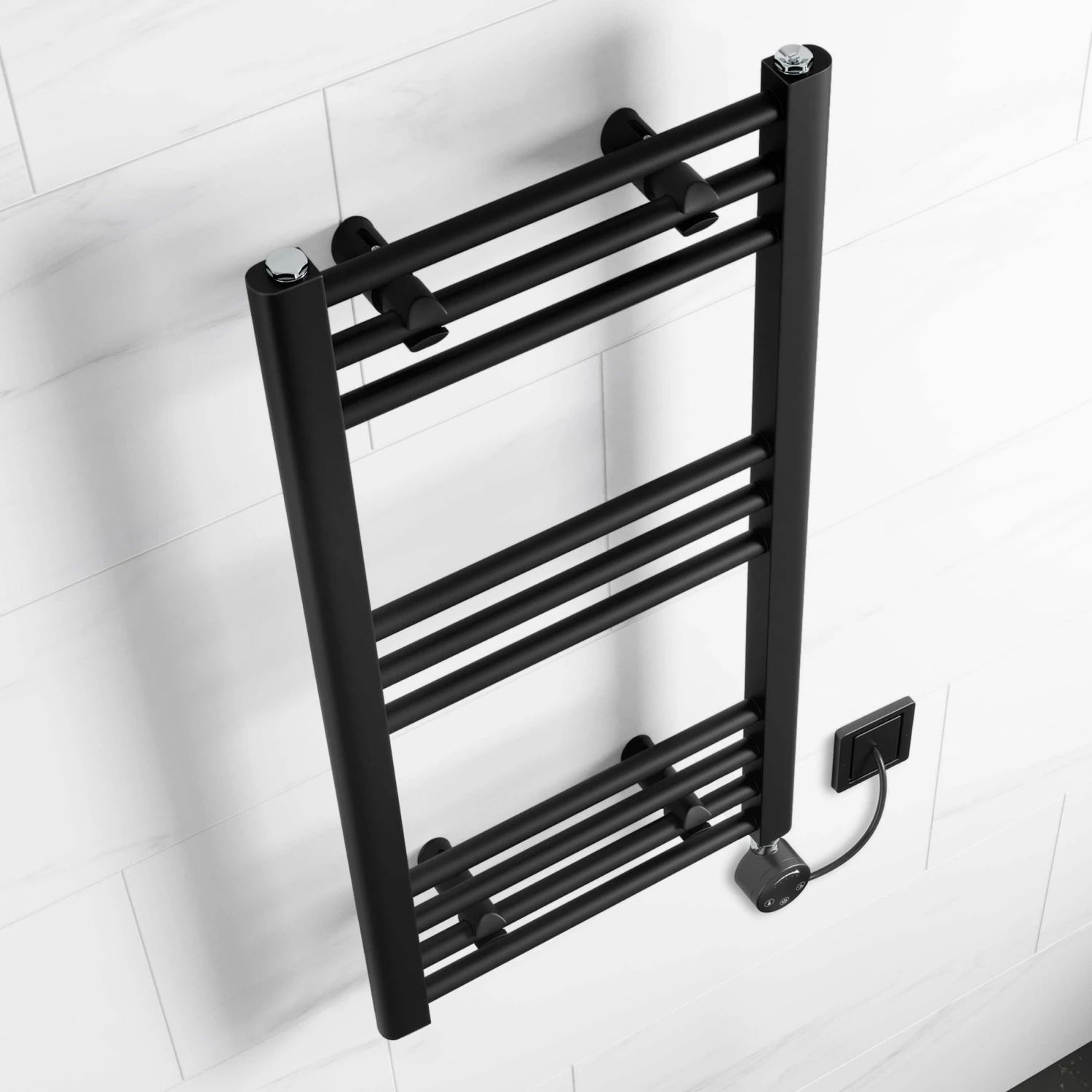 Barcelona Electric Matt Black Straight Heated Towel Rail 800x400mm