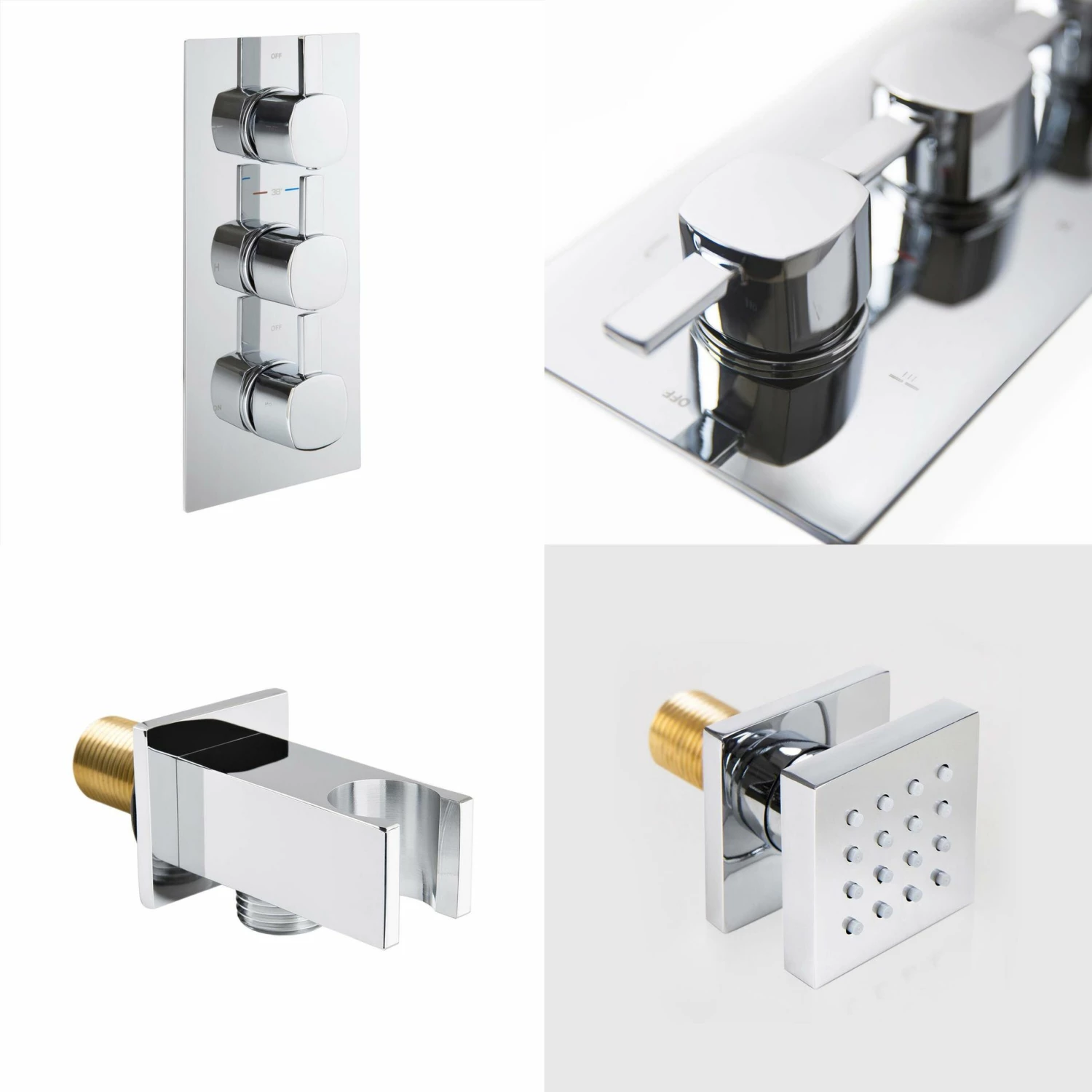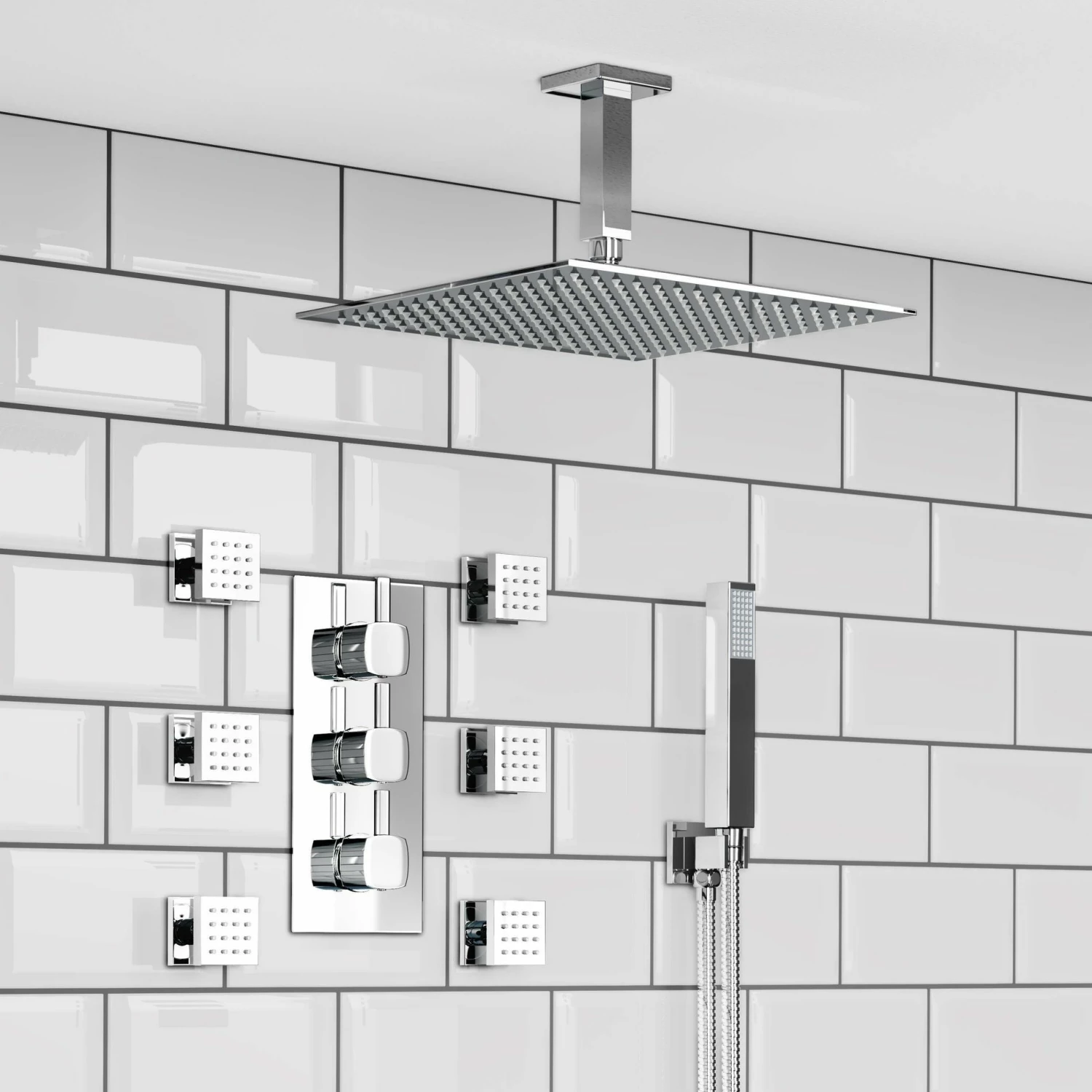 Ceiling Chrome Square Thermostatic Set – 300mm Head, Hand Shower & Jets