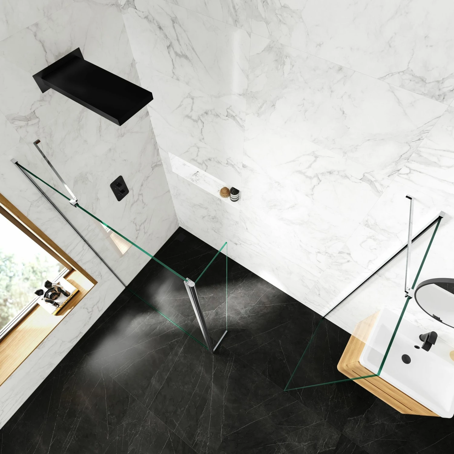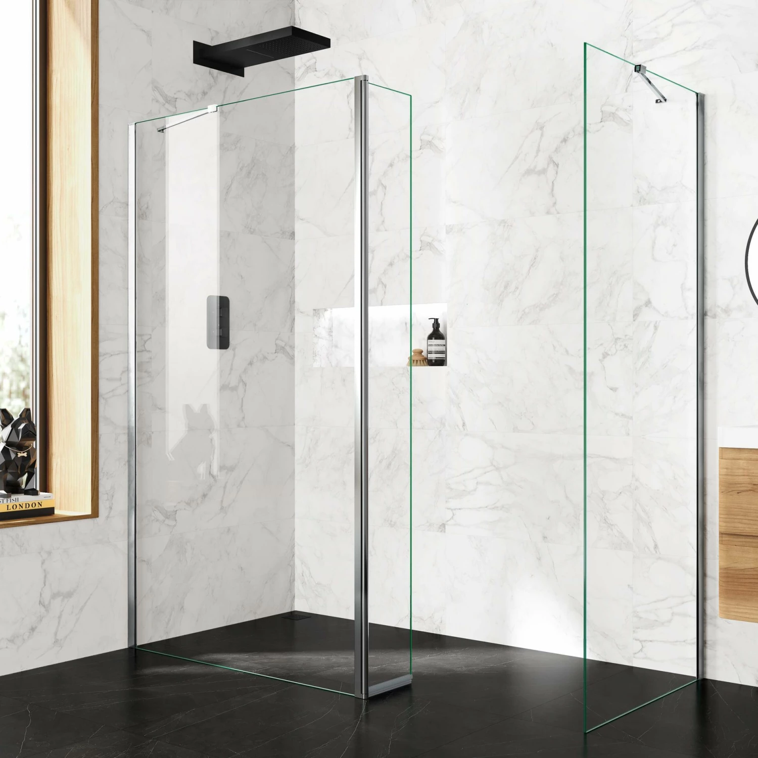 Copenhagen Easy Clean 8mm Walk In Shower Enclosure 1100mm & 800mm Glass With Pivotal Return Panel
