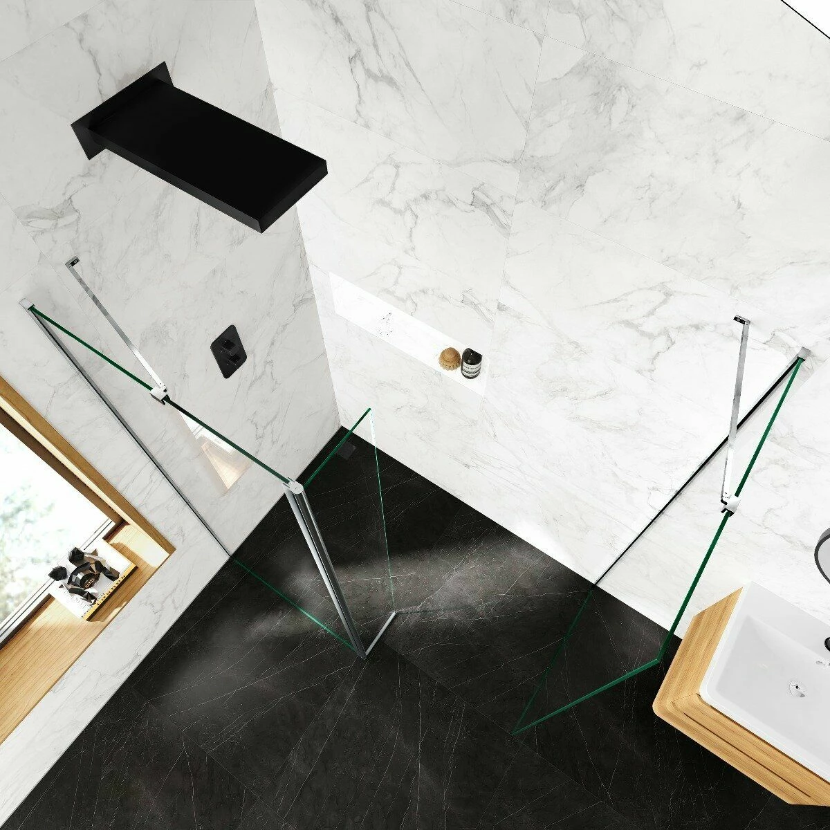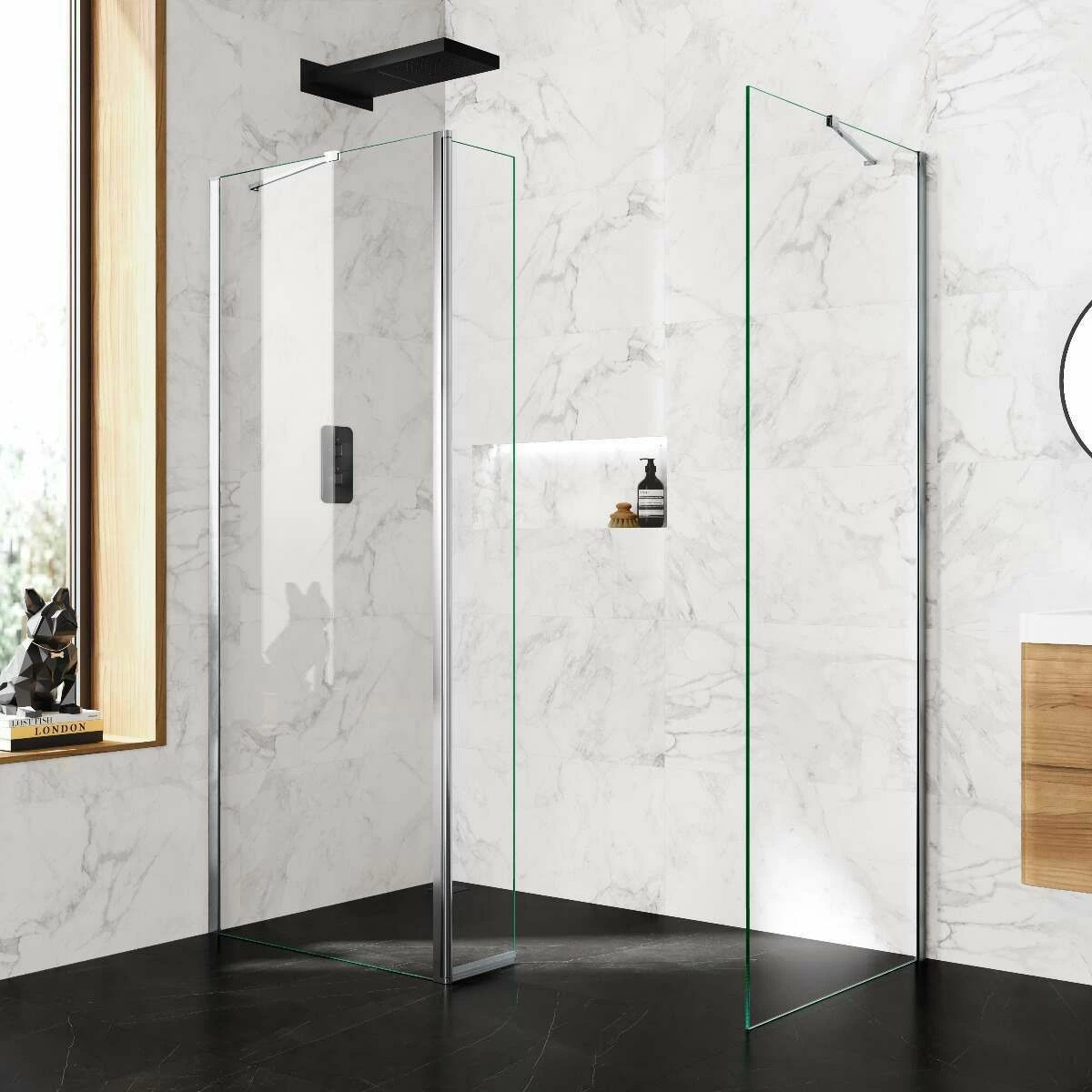 - Combine different sizes to build a walk in wet room enclosure