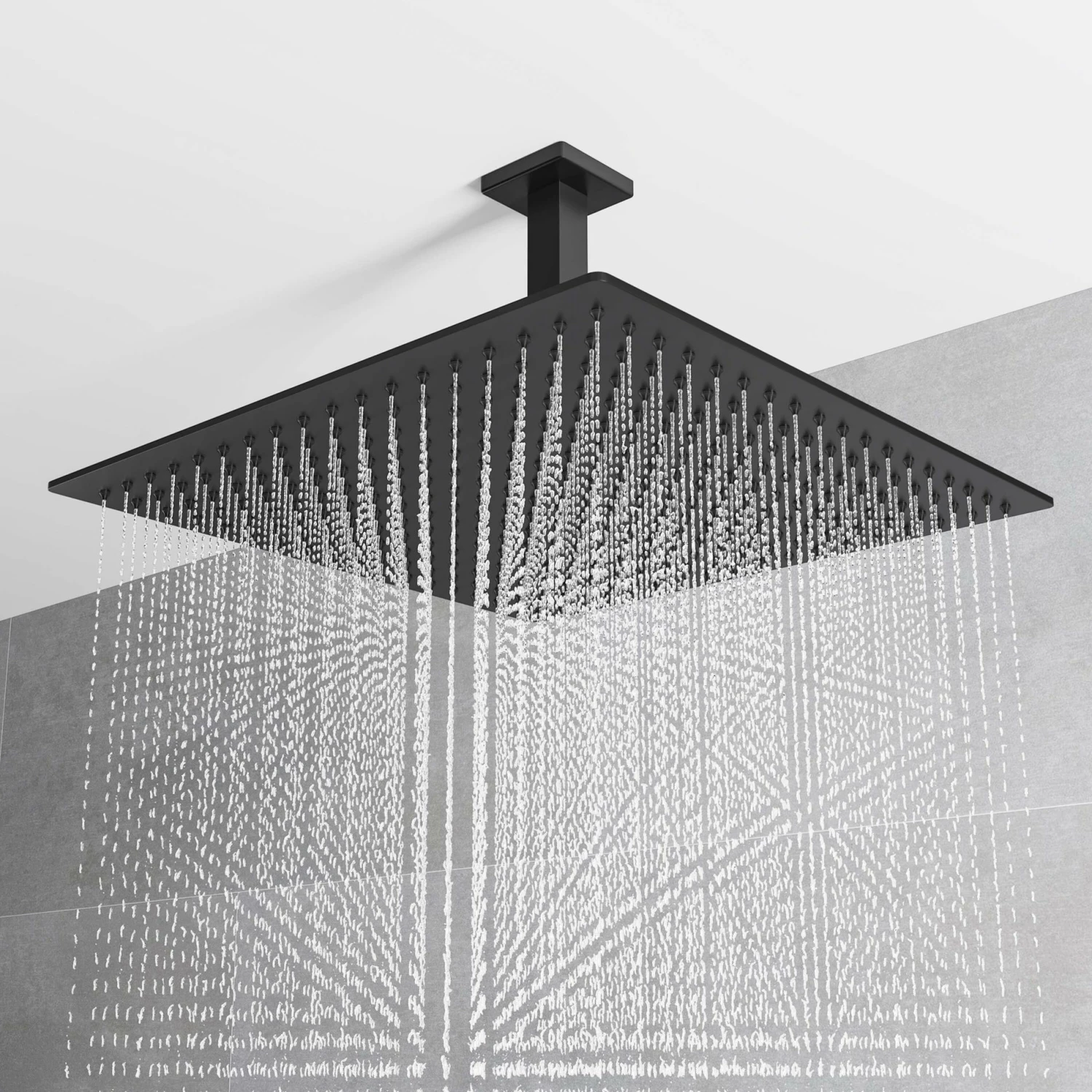 - High quality matt black finish ceiling shower arm and slim 400mm chrome shower head
