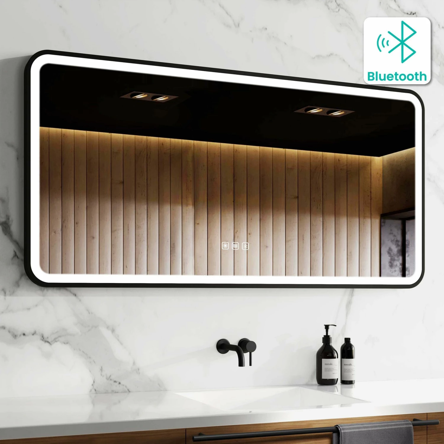 Be the first to review “Olivia Black Framed Illuminated LED Mirror With BLUETOOTH Speaker 600x1200mm” Cancel reply