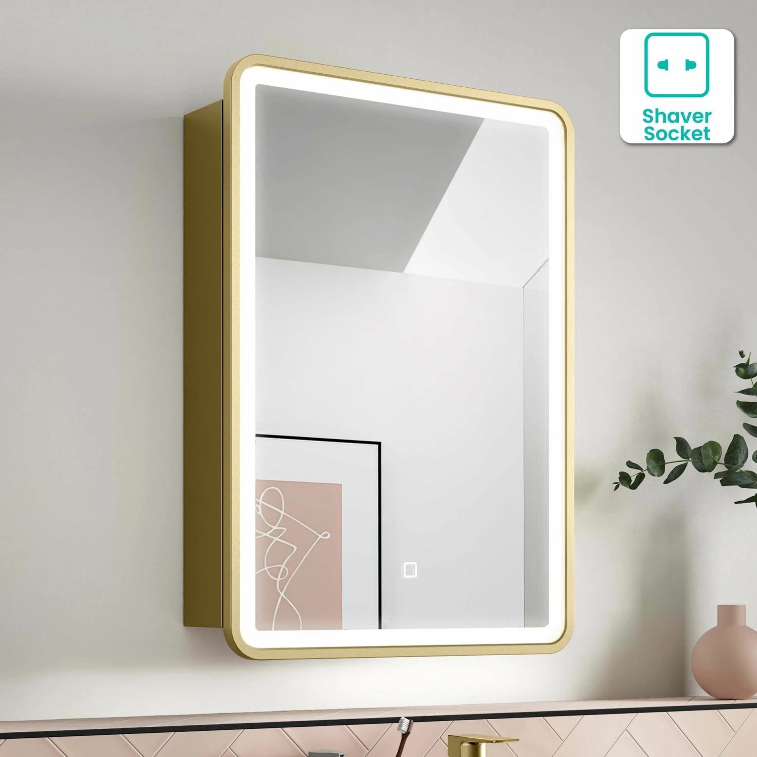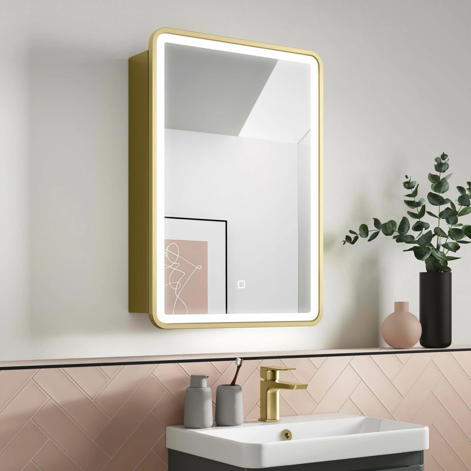 Olivia Matt Brass Illuminated LED Mirror Cabinet 710x500mm