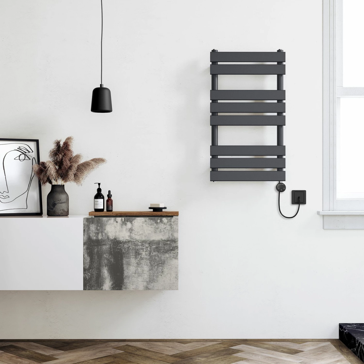 Santorini Electric Anthracite Flat Panel Heated Towel Rail 800x450mm
