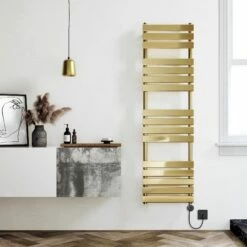 Be the first to review “Santorini Electric Brushed Brass Flat Panel Heated Towel Rail 1600x450mm” Cancel reply