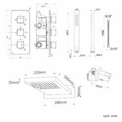 Shannon Premium Traditional Thermostatic Set – 200mm Head, Slider Shower & Bath Filler Waste
