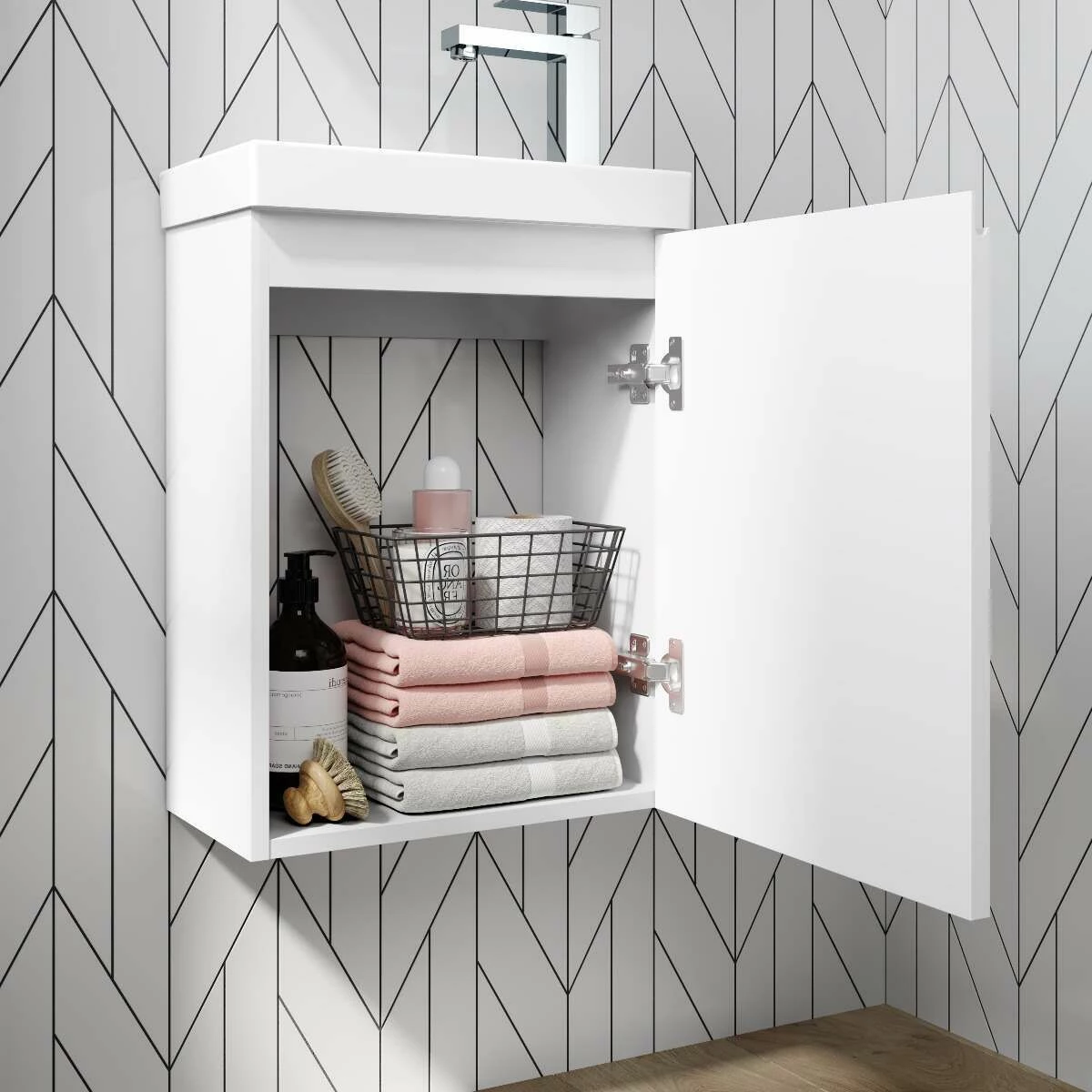 Be the first to review “Trent Gloss White Cloakroom Wall Hung Basin Vanity 400mm And Toilet Set” Cancel reply