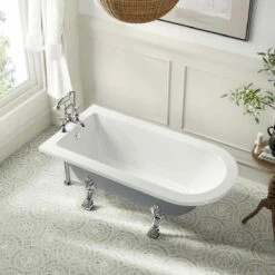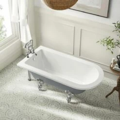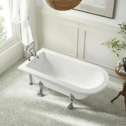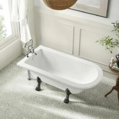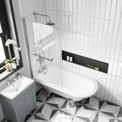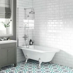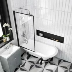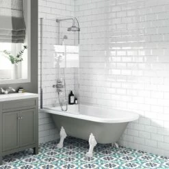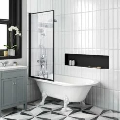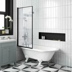 Abingdon 1500 Roll Top Shower Bath – White Claw Feet & 6mm Easy Clean Matt Black Framed Screen