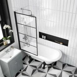 Abingdon 1500 Roll Top Shower Bath – White Claw Feet & 6mm Easy Clean Matt Black Crittall Screen